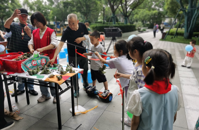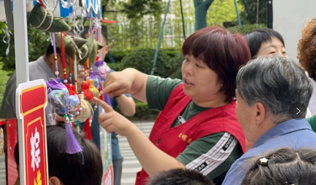 将艾草放进香囊作为礼物,赠送给儿童和长辈。赠予孩童寄托着辟邪驱瘟的美好祝愿,赠予长辈的则寄寓着长寿无疆的深深祝福。这一环节不仅让居民们感受到了端午节的传统氛围,更传递了社区对居民们的关怀和祝福。