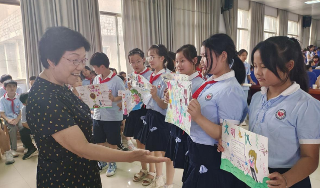 讲座结束后,学生们为冯教授送上了自己绘制的文明礼仪手抄报、书法或对联等作品,冯教授与学生们亲切交流,对十二小学生们的作品和学习热情赞不绝口。