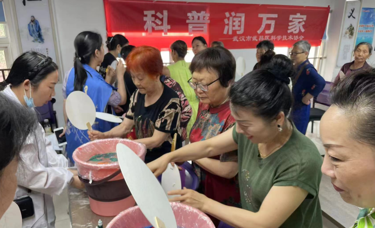 6月6日上午,在南湖中央花园社区二楼会议室,开启了武昌区“科普润万家”——《非遗—漆扇》科普活动。活动旨在“传承非物质文化遗产,学习漆扇的基本制作方法”使社区居民了解非物质文化遗产的基本内涵,认识非物质文化遗产的种类、特征和价值,增强民族文化自豪感。