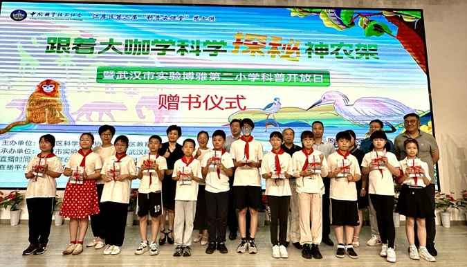 随后,领导嘉宾向武汉市实验博雅第二小学学生代表们赠送《神农架中小学科普实践教育系列丛书》。