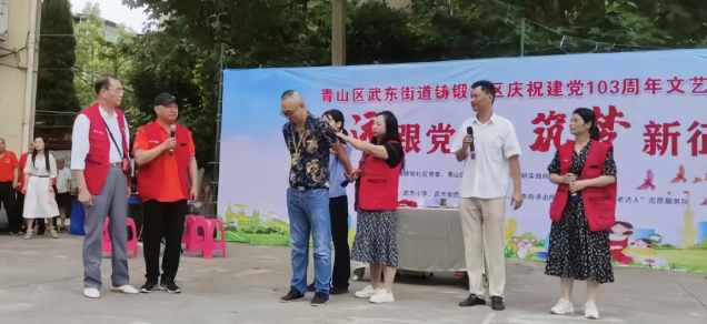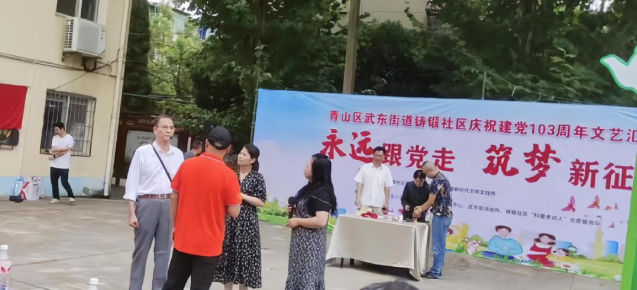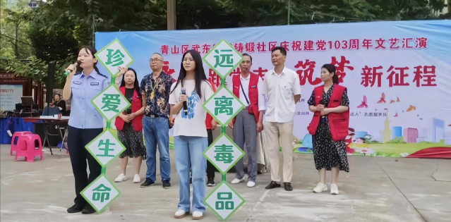 在武东街平安办、武东街派出所的鼎力支持下,由“武汉楷模”胡亮斌、武东街派出所申警官、“武汉市最美志愿者”杨业斗领衔的社区科普老达人团队、武东街禁毒社工以及社区党员干部共同参演,为居民呈现了一场形象生动、富有感染力的情景剧。