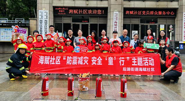 为了增强社区青少年的防震减灾意识和安全自护能力,近日,武汉市江岸区后湖街道海赋社区举办了一场“防震减灾 安全‘童’行”主题活动。本次活动不仅涵盖了地震防护、消防安全知识的科普,还加入了生动有趣的消防安全演练环节,让孩子们在玩乐中学习,在学习中成长。
