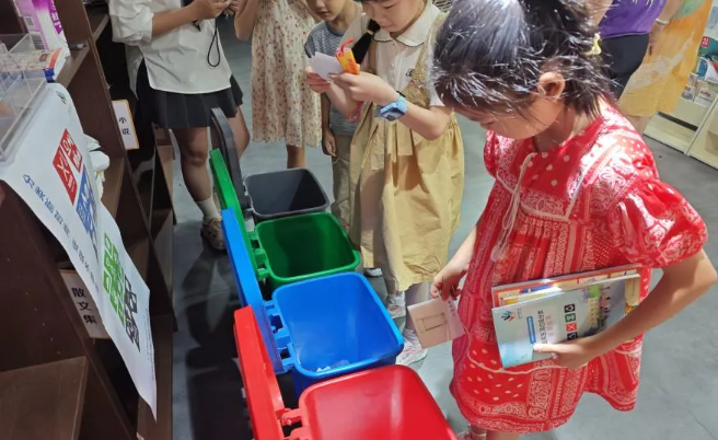 正确分类,垃圾变宝互动环节,志愿者特别设置了标有各类物品的卡片,让小朋友们分辨,并准确地投向摆放着标有“可回收物”、“有害垃圾”、“厨余垃圾”、“其他垃圾”的四分类的垃圾桶内。每当有小朋友成功投放,现场便响起一阵热烈的掌声和欢呼声,气氛十分热烈。