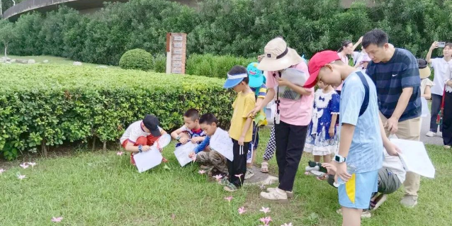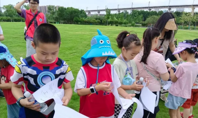 戴上《户外寻宝手册》这顶“魔法帽”,我们的小小探险家们走进戴家湖东门的神秘大门,踏入了一场绿色奇遇。杨老师,那位像从童话里走出来的园林魔法师,一边走一边变出各种植物的秘密:“看,这是会变魔术的一球悬铃木,两个球的是它的双胞胎兄弟,三个球的则是家族里的老大!”孩子们瞪大眼睛,七嘴八舌地问:“杨老师,它们的叶子会唱歌吗?”“哪种叶子可以变成魔法药水呢?”