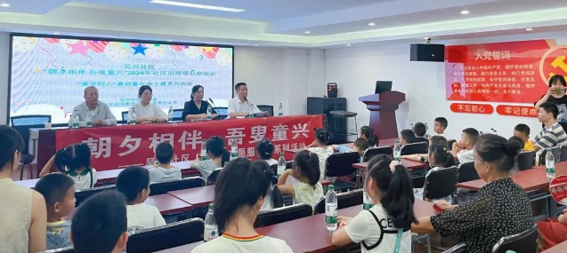 活动吸引了社区能人、老党员和社区志愿者等积极参与,同时还有二十余名社区儿童、青少年热情参与。活动伊始,街道副主任刘芬同志代表吴家山街党工委发表了热情洋溢的致辞,对项目的实施表达了坚定的支持,鼓励社区要充分发挥基层党组织动员群众、组织群众、凝聚群众的独特优势,期望社区“一老一小”两大群体能积极参与到社区共建共管中来,服务自己也服务他人,共同缔造宜居社区。居民代表高怀庭同志作为一名老教师老党员,也发言表达了对本次活动的热情参与与支持,希望在这个炎热的暑期为辖区的儿童和青少年贡献自己的智慧和帮助。