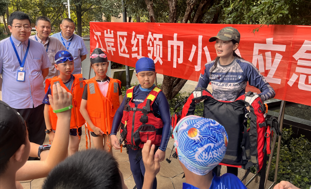 7月17日下午,江岸区应急管理局联合花桥街道办事处、江岸区宝捷应急救援队开展“红领巾小小应急宣传员”活动,在游泳池边实景开展防溺水教育,来自武汉博雅小学的10余名同学及家长参加了本次活动。