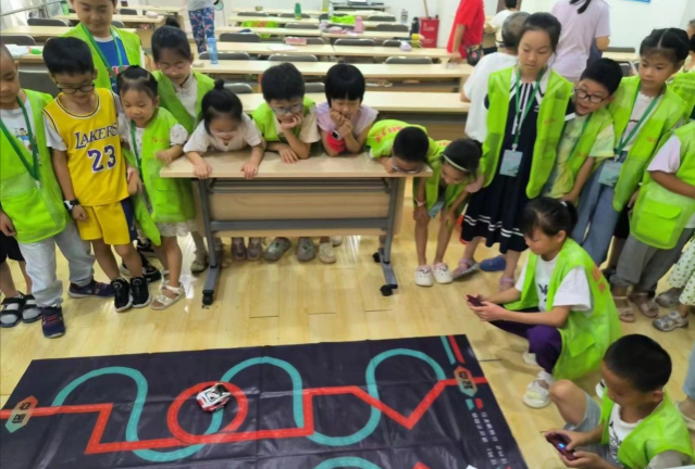 智能科技,触手可及,课程伊始,志愿者老师通过生动有趣地讲解,向孩子们展示了格斗机器人的魅力所在。从机器人的构造原理到操作技巧,每一个细节都让孩子们目不暇接,仿佛打开了通往科技世界的大门。