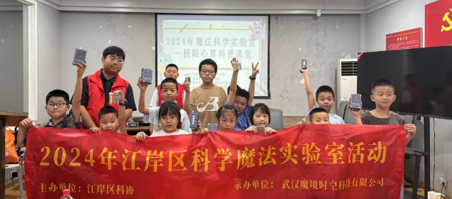 在科技发展的浪潮中,科学教育正成为青少年创新能力的催化剂和科学素养的基石。为了点燃青少年对科学的热爱,同时丰富江岸区青少年的暑期生活,2024年7月17日(星期三)上午,江岸区科协联合武汉魔境时空科技有限公司,在一元路街道洞庭社区举办了一场别开生面的“2024年科学魔法实验室—极限心算”科学小课堂。这场活动不仅仅是一堂课,更是一次科学与魔术的奇妙邂逅。