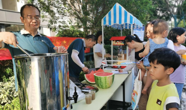 解暑美食,味蕾盛宴:除了泳池泡泡趴外,活动现场还准备了丰富的解暑美食。清甜可口的绿豆汤、鲜嫩多汁的西瓜以及香脆可口的爆米花等美食,让居民们在享受清凉的同时,也能满足味蕾的渴望。大家聚在一起,品尝着美食,交流着生活的点滴。