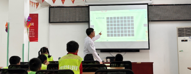 活动伊始,李昊磊老师便以一系列神奇的小指针魔术吸引了在场所有小朋友的目光。孩子们的热情回应和极大的好奇心被彻底点燃。李老师巧妙地利用了视觉暂留效应,让指针仿佛能够穿过竖着的小棍,这一现象引发了孩子们的惊叹。