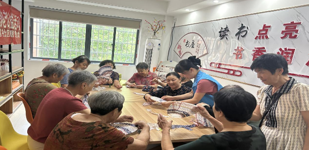 在2024年8月21日这个阳光明媚的星期三,吴家山街文家湾社区福满家老年人活动中心里热闹非凡,一场别开生面的“环保创意、巧思妙手”手工团扇活动正在如火如荼地进行着。