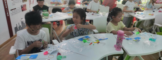 接下来的环节,是孩子们最喜欢的手工制作。现场的每一个孩子都领取到了一套材料包,包括一个透明的塑料瓶、三个小型气球、二段软管。孩子们按照老师的步骤,小心翼翼地开始组装自己的小玩具。在组装过程中,有的孩子遇到了困难,比如气球不容易固定或者软管连接不紧。这时,科普老师耐心地帮助他们解决问题,确保每位孩子都能顺利完成。