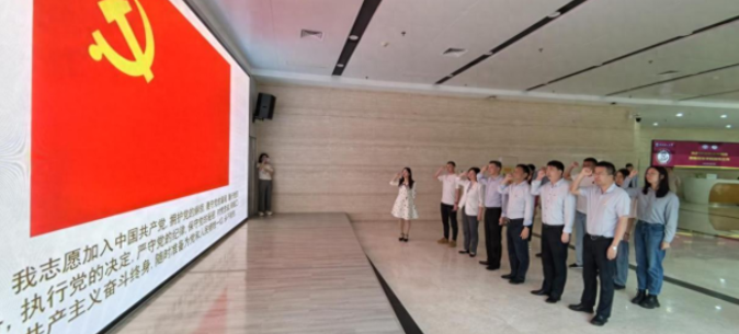 活动伊始,武汉理工大学创业学院教工党支部书记刘勤带领全体党员,面对党旗庄严宣誓,重温入党誓词。创业学院副院长彭华涛主持集中学习。