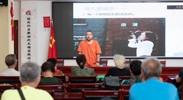 现场科普知识大讲堂活动中青年科技志愿者讲解四季养生、合理膳食、科学健身等小常识,并发放调查问卷、健康物资、科普宣传册50余份。接着专业的科技志愿摄影老师为老年人们详细讲解手机摄影技巧,从构图到光线运用,从拍摄角度到后期处理,从如何捕捉景色的柔美到人物在场景中的生动表现,志愿者深入浅出地讲解让大家受益匪浅。现场银龄们聚精会神地聆听,不时举起手机相机比划,迫不及待地想要将新学到的技巧运用到实践中。