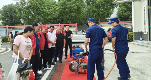 消防安全演练紧张而有序。消防员们现场展示消防器材的使用方法,并进行了模拟演练。市民们积极参与,亲身体验液压剪切器等器材的操作,通过体验,深刻地认识到消防安全的重要性,增强了自我保护意识,提高了应对火灾等突发事件的能力。