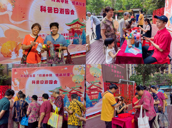 花好月圆,科普添彩。今年的全国科普日活动恰逢中秋佳节,传统文化与科技知识的融合会碰撞出怎样的火花?2024年9月14日上午,为了弘扬中秋节的传统文化,丰富社区居民老人的科普文化生活,工人村街道青馨居社区携手普仁易维康居家养老服务中心举办了一场别开生面的“月满中秋 情满邻里”科普日游园会活动。