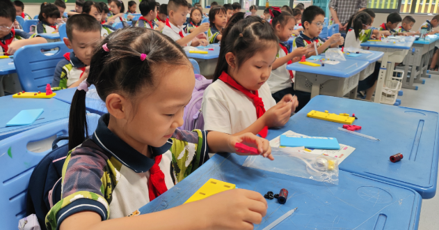 理论讲解之后,最让学生们兴奋的莫过于动手制作环节了。吴老师指导学生们利用环形磁铁、笔芯、橡胶圈、泡沫板等材料,亲手制作一支属于自己的磁悬浮笔。在这个过程中,学生们不仅锻炼了动手能力,还充分发挥创造力,有的尝试用更少的磁铁完成制作,有的则在外观设计上别出心裁。