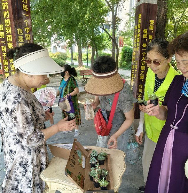活动现场摆放着各式各样的多肉植物,它们小巧玲珑、形态各异。科普志愿者耐心地向居民们介绍每种多肉植物的名称、习性、养护技巧等日常养护知识,并开展多肉种植相关知识有奖竞答。大家听得津津有味,不时提出自己的疑问,志愿者一一耐心解答,让居民们对多肉植物有了更深入的了解,同时更直观地了解多肉的种植方法。