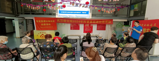 为全面贯彻落实党的二十大和二十届二中、三中全会精神,弘扬科学精神和科学家精神,传播科学思想,云林社区联合武汉综合交通研究院有限公司于9月19日上午,在台北街道云林社区一楼活动大厅开展2024年江岸区全国科普日活动《提升全民科学素质、协力建设科技强国—交通强国武汉先行科普宣讲》。