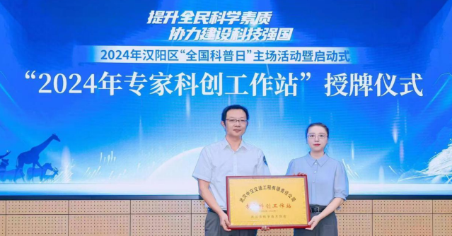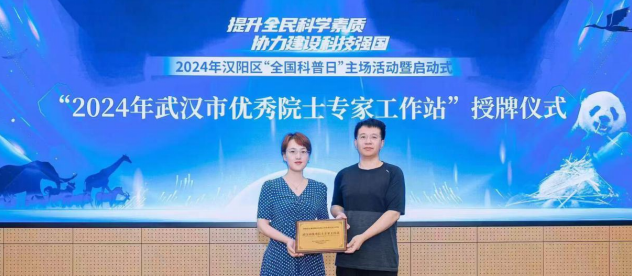 活动现场,市科协副主席刘志武为武汉健民药业集团股份有限公司授予 “武汉市优秀院士专家工作站” 牌;区政府党组成员、副区长黄翀为武汉中交交通工程有限责任公司授予“2024年专家科创工作站”牌。