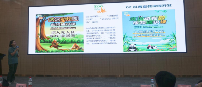 武汉动物园围绕生态之美、生命之美、生活之美分享了作为武汉市中心城区最大的人与自然、人与动物互动场所打造科普教育基地的成功经验。近年来,武汉动物园着力科普宣教品牌建设,开创了线上线下多种科普宣教课程,通过园内园外课程联动,覆盖了武汉三镇各小学。