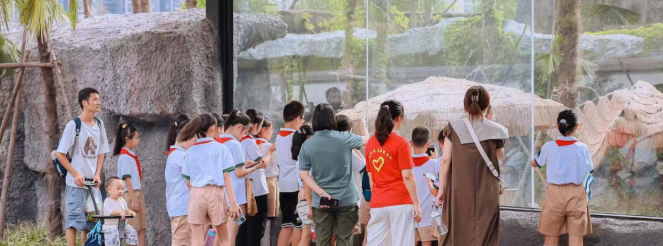 启动仪式后,武汉动物园科普志愿者带领与会人员及师生走进武汉动物园开展生物多样性现场研学体验活动。