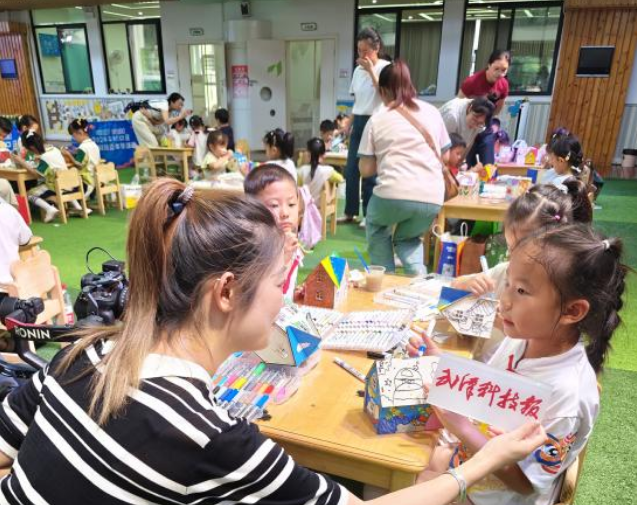 本次活动精心设计了五大项目,旨在全方位、多角度地满足幼儿的好奇心与求知欲。其中,“纸折飞机靶标团体赛”不仅比拼纸飞机的精细折法,更在投掷中展现着孩子们对角度、力度的精准掌控;“七彩阳光”制作涂装赛鼓励孩子们动手制作并装饰自己的作品,培养他们的色彩感知与动手能力;“绿翼童行,废旧翅膀展未来”环保制作赛倡导废物利用,培养孩子们的环保意识和创新能力;“创意自制车保龄球积分赛”让孩子们在趣味游戏中体验物理原理,激发创新思维;而科幻画作品报送环节,则为孩子们提供了一个自由想象、表达未来科技愿景的舞台。