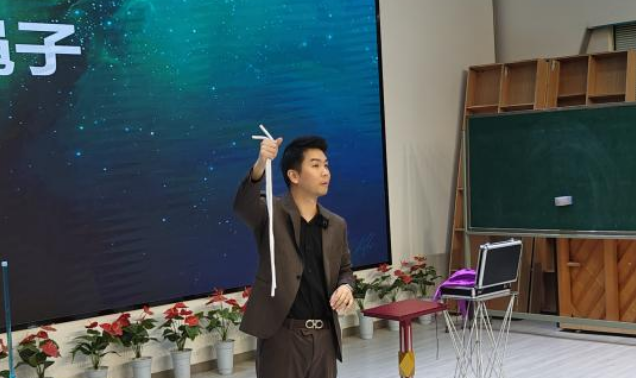 活动开始,“是科学还是魔法”科普秀便以一连串生动有趣的互动问答,瞬间点燃了全场学生的热情。文豪老师以独特的方式将深奥的科学知识与迷人的魔术表演无缝融合,引导学生们深入思考日常生活中那些习以为常现象背后的科学原理。在欢声笑语中,孩子们不仅收获了知识,更体会到了探索未知世界的无穷乐趣。