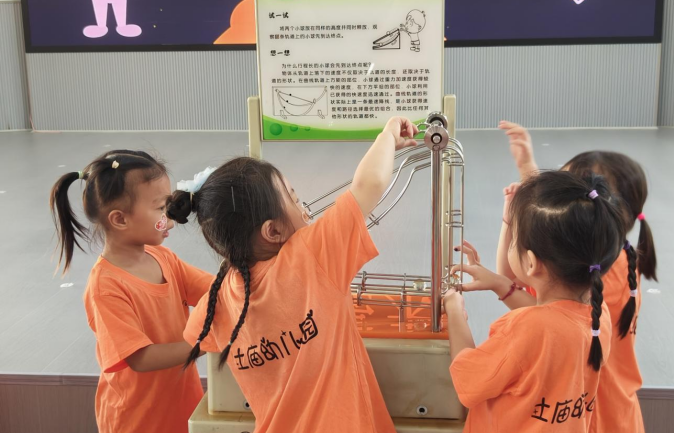 在老师的带领下,大班和中班的小朋友们依次有序进场参观并体验各个科技项目,科技志愿者耐心地为孩子们讲解展品的原理,用简单易懂的语言引导孩子们感受科学的魅力。孩子们聚拢在科普展品周围,兴致勃勃地动手操作各类科普展品。转动齿轮,亲身感受机械的强大力量;按下按钮,仔细观察电路的奇妙变化。神奇的光学仪器为孩子们开启了别样的世界,他们满是好奇地围在一起热烈讨论,小脸上绽放着对科学的深切浓厚兴趣以及强烈的探索欲望。