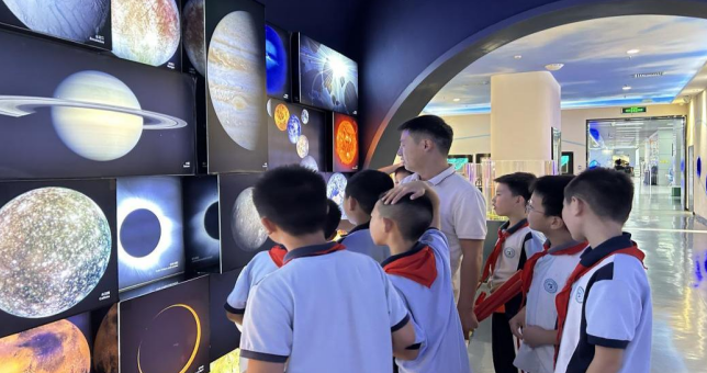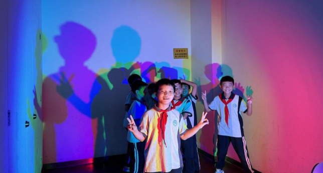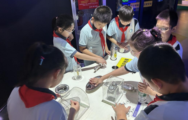 孩子们好奇又兴奋,在展厅内左看看右瞧瞧,尝试各种科普装置,了解地球生命的进化历程,感受宇宙运转的奥秘,体验光的神奇。当遇到不明白的内容时,孩子们就主动请教老师和科普志愿者们,遇到有趣的装置便喊来自己的小伙伴一起体验,展厅内欢笑声一片。