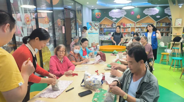 活动中,老师还向大家介绍了艾草锤的养生功效,通过现场演示和分步骤仔细讲解的方式带领大家一起制作艾草锤。大家纷纷动起手来,铺平布料、平放艾草、包裹成团、放锤柄、裹方布、缠麻绳等步骤,在制作过程中大家相互交流,互帮互助,在欢声笑语中一个个花色各异的艾草养生锤就制作完成了。