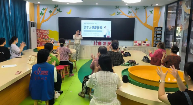 活动伊始,老师通过“手指操”热身小游戏拉开活动序幕,“一二三四、二二三四……”大家跟着老师的节拍,拍拍手,拍出健康,带动了学员的学习氛围。随后老师就教职工职业病防治及老年人健康管理做了讲解,引导大家培养科学的养生方式,帮助老年人识别生活中的“伪科学”,养成科学生活习惯,提升老年人健康管理能力。老师从冬季气候特点出发,向现场老年人们详细介绍了冬季人体的自然运行规律,以及日常生活中如何培养合理的饮食起居习惯和运动习惯,提醒大家日常生活应该注意的事项。